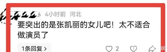 身体动作、眼神都没什么变, 就好像人定住了一样, 观众看着就很难进去。 张可盈是星二代, 张凯丽的闺女, 这事谁都知道,